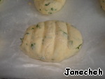 Выкладываем на противень на пергамент и вилкой немного прижимаем сверху, имитируя настоящий рисунок батонов. Духовку разогреем до 200 градусов, выпекаем до готовности.
