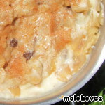 Смешиваем яблоки с пудингом. Добавляем орехи кусочками, изюм и корицу.