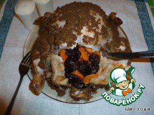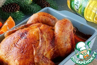 Обмазать ею курицу и поставить запекать в духовку при 180градусах на 1 час на смазанный растительным маслом противень.