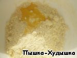Дабавляем желток, холодную воду и замешиваем тесто, пока оно не станет гладким. -