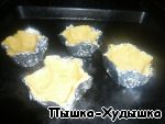 Застилаем тестом формочки и ставим в духовку на 15-20 минут до золотистого цвета. Если кому нужно, то можно и дольше подержать.