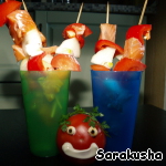 Весело и с фантазией нанизываем рыбу и овощи на шампур или деревянные шпажки, если процесс приготовления происходит дома, и жарим шашлык на углях или в духовке на огне 200 градусов около 30 минут.