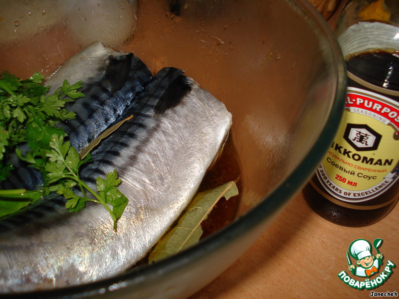 Рыбу можно брать любую. У меня была скумбрия. С вечера я пересыпала солью с сахаром (2 ст. ложки соли и 1 ст. ложка сахара), убрала в холодильник. Утром промыла. Последний раз еще оставила на 1 час в соевом маринаде. Вы можете солить вашим любимым способом - это не принципиально.