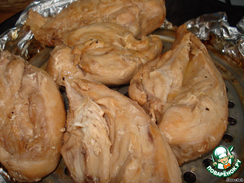 Таким способом я коптила куриные грудки. Сначала их мариновала в соевом маринаде, а потом коптила - очень вкусно. Можно добавлять в салаты. Куриное филе сначала маринуете в соусе 2 часа, можно оставить на ночь: