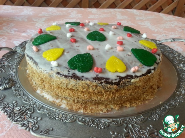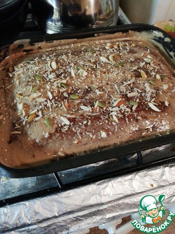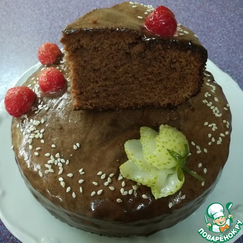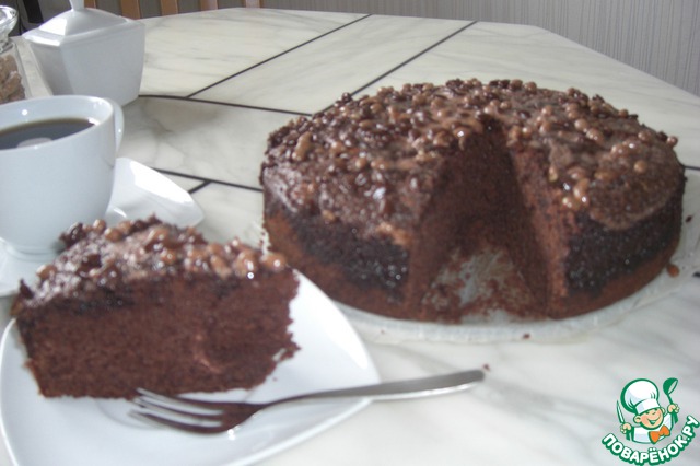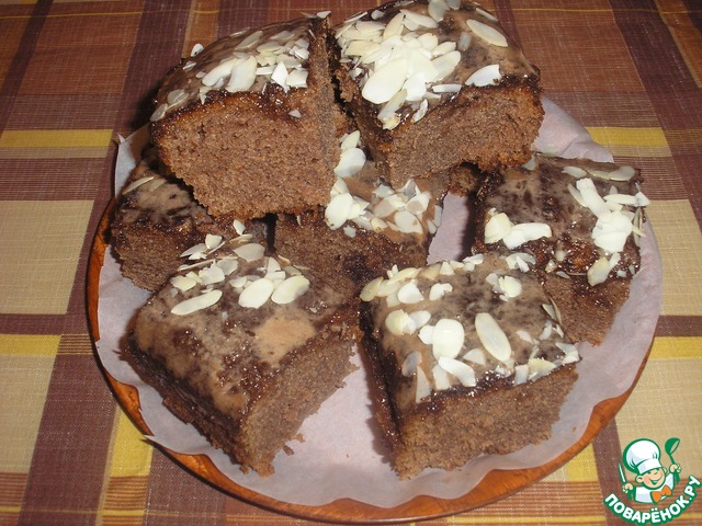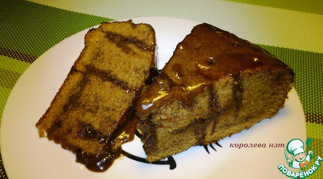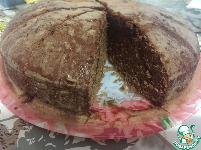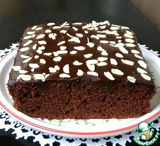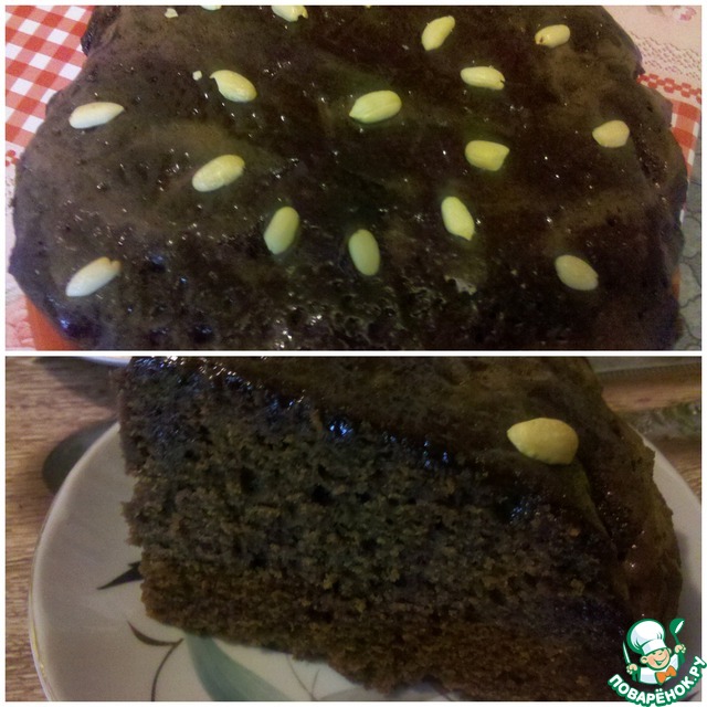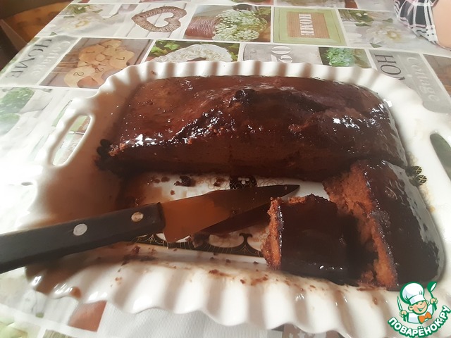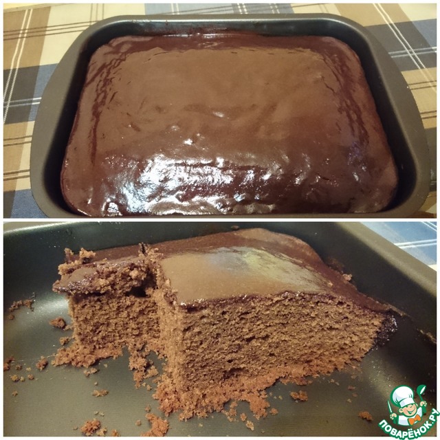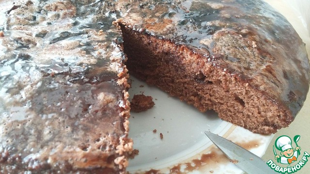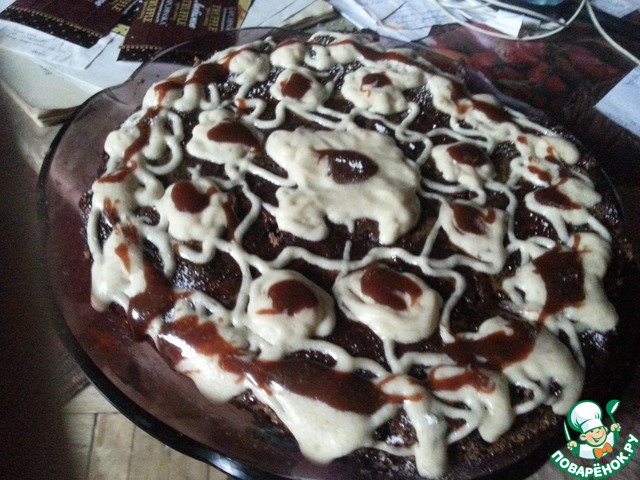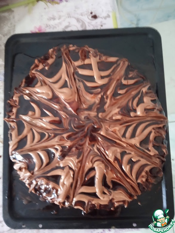 Затем на горячий пирог вылить 1 ст. шоколадной глазури (которую мы откладывали в сторону) и дать остыть.
