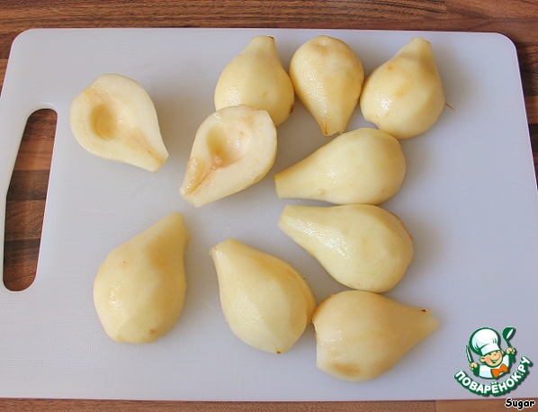 Груши очистить, перерезать наполовину, вынуть серединку.