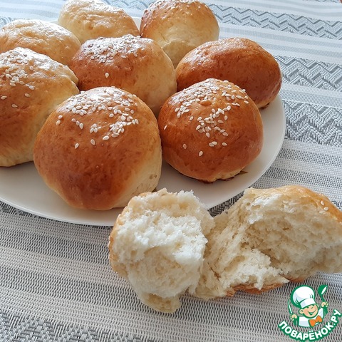 Только вот у меня почему-то 10 штук получилось всего... может тесто недостаточно поднялось.. хотя в результате очень пышные булочки вышли. Кстати, делала на сухих дрожжах.