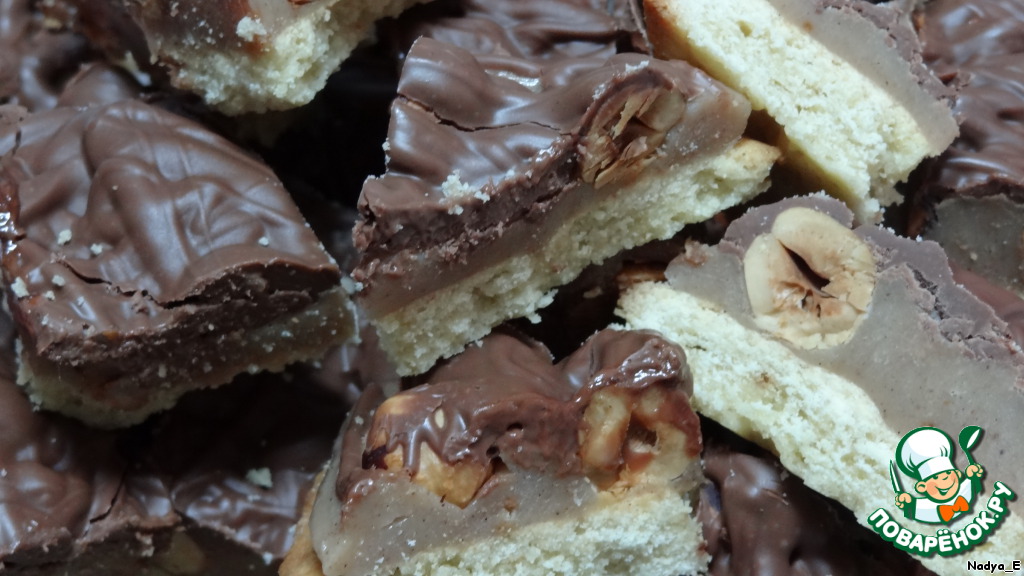 Millionaires Shortbread Bars. Фантастический десерт - печенье, карамель, орехи и тооолстый слой шоколада. "... вот практически все, что от жизни мне надо". Если вы любите шоколадки типа "Твикс" или "Сникерс", то вам сюда. Уверяю, ничего вкусней вы в жизни не ели. На сайте есть похожие рецепты, но мой отличается, так что я рискнула.