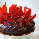 Готовый корж хорошо остудите. По желанию можно разрезать поперек на две части. Ганаш слегка взбейте миксером, так он станет воздушней. Покройте им торт. Украсьте по своему вкусу. А можно ганаш не остужать в холодильнике, а еще теплым и жидким покрыть торт. Поступайте так, как Вам нравится. Очень вкусно подать такой тортик с шариком ванильного мороженого. Очень вкусно!
