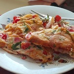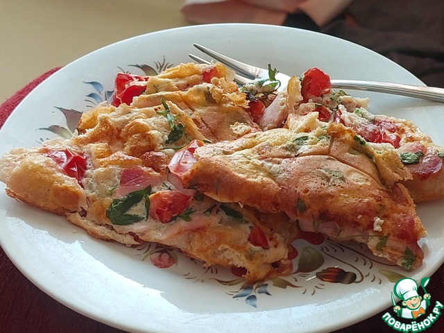 - Колбаса (мясо, у меня был куриный рулет) — 1 ломт.