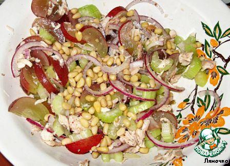 Если нравится в салатах присутствие яблок, груш и т.д., то понравится и с виноградом. А знаменитый "Тиффани" ты не пробовала? Вкуснейший салат!
