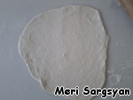 Тесто разделить на отдельные шарики. Каждый шарик раскатывать в тонкую лепёшку.