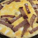 Уменьшаем огонь до минимума, засыпаем сыр, накрываем крышкой и томим минут 5 до полного проготовления яйца и расплавления сыра. Пардон за качество фото. С первого раза оно не удалась, а сразу после того, как я ее сдалала, "помер" аккумулятор на фотитке и повторно "клацнуть" не удалось. :(