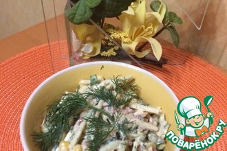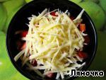 Сыр натереть на крупной терке. Перемешать аккуратно ингредиенты салата, посолив по вкусу.