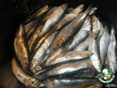 Кильку моем (я не потрошу) и аккуратно укладываем в мультиварку. Раньше делала просто в утятнице или толстой сковороде.