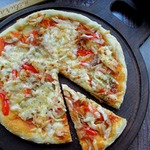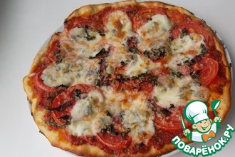 Ставим выпекаться пиццу в заранее разогретый духовой шкаф на 20-30 минут. За 10 минут до готовности обильно посыпаем сыром.
