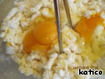 Добавить яйца, корцу и ваниль/ванилин, вымешать до однородности.