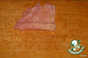 Взять один кусочек, подсолить, немножко смочить молоком или водичкой для сочности.