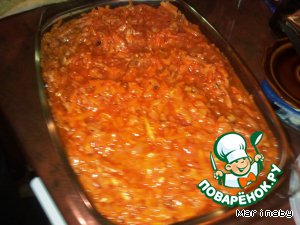 • Далее слой - овощей, слой - рыбы, верхний слой должен быть овощей. Ставим в дузовку на 1 час температура 180 градусов. У меня получилось три слоя рыбы.
