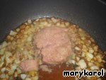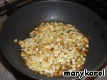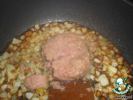 • Жарим лук на оливковом масле. Если тунец у вас в подсолнечном, то лук жарьте на подсолнечном.