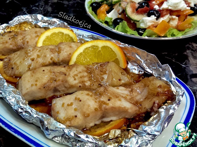 Рыба получается нежная, сверху с тонкой корочкой, а внизу с нежным апельсином. На мой вкус - прекрасно!)