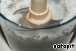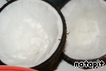 Поместить мякоть кокоса в блендер, перемолоть и залить 3/4 стакана кипятка, пробить в блендере.