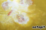 Добавить креветки и соль. Варить дальше, пока креветки не станут розовыми. -