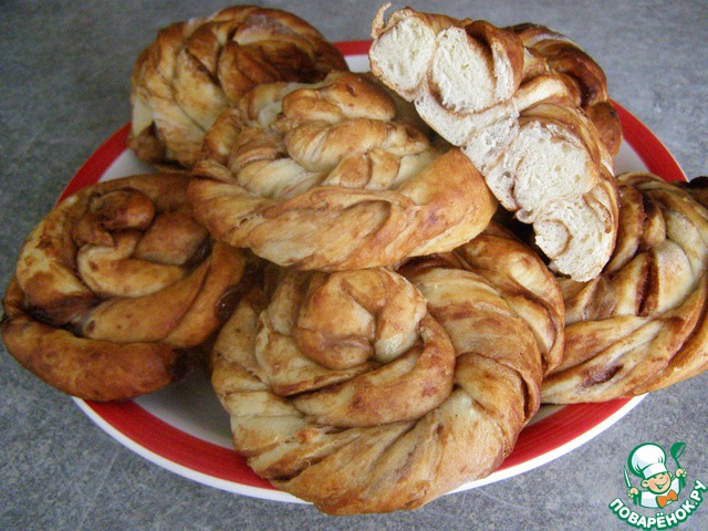 - Яйцо куриное (1 - тесто, желток сверху на булочки) — 2 шт