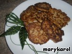 Ставим на огонь сковороду, наливаем масло. Столовой ложкой выкладываем наши бризоли, обжариваем с обеих сторон до красивой золотистой корочки.