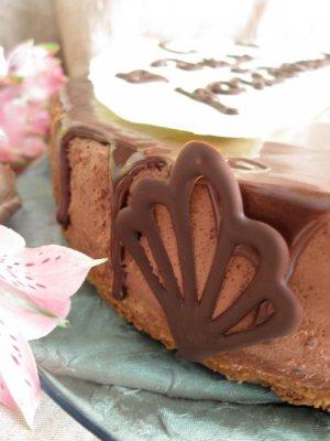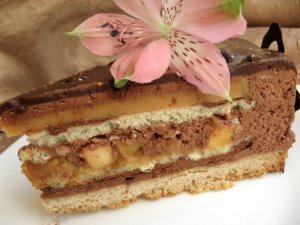 Вот, наконец, завершились наши празднества, и вот, наконец, я подобралась к творениям австралийского кондитера Адриано Зумбо. Информацию взяла с сайта Нины Никсии, т. к. больше в русскоязычном инете информацию про этот торт нигде и не нашла. А Нине огромное спасибо за русификацию таких шедевров! Про вкус этого торта тоже особо говорить не буду, просто процитирую: «Десерт необычный и оригинальный, нежный и очень вкусный. Сам торт состоит из мягкого, практически воздушного мусса без желатина, сладкой яблочной прослойки и толстого слоя соленой карамели. Эта карамель и яблоки, в сочетании с богатым шоколадным вкусом, нежным бисквитом и хрустящей базой песочного пряного коржа, имеют удивительное свойство — завладеть вами, вашим вниманием на столько, что вы потеряете счет времени, пока будете наслаждаться каждым кусочком»… Больше никаких отступлений! Знакомьтесь – Шоколадно муссовый торт!