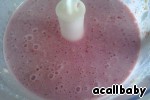 Тем временем творог+молоко+банан+ клубника+сахар взбить вместе в блендере (или миксером).