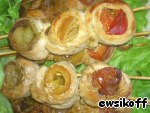 Деревянные шпажки заранее положить в воду, чтобы они не горели при жаренье.