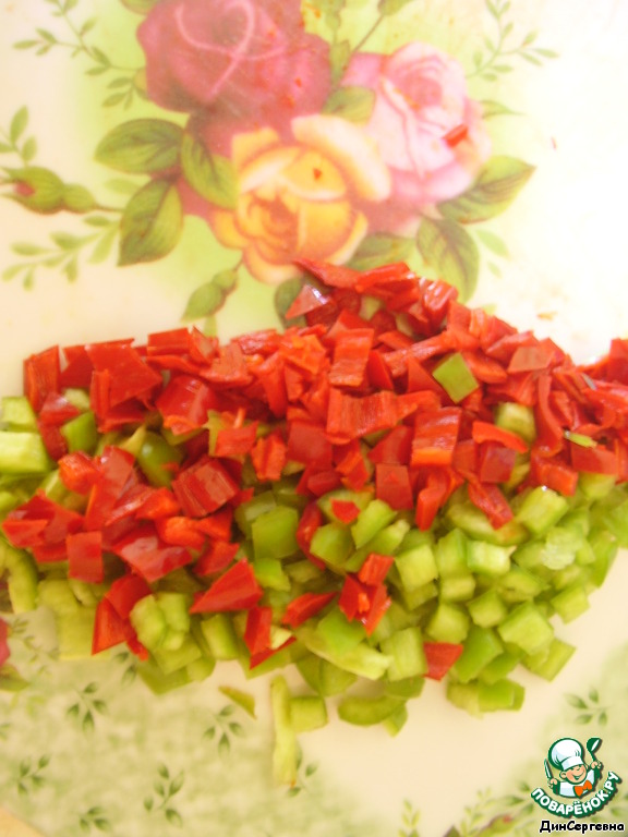 Очищаем перец от хвостиков и семян и нарезаем мелким кубиком.