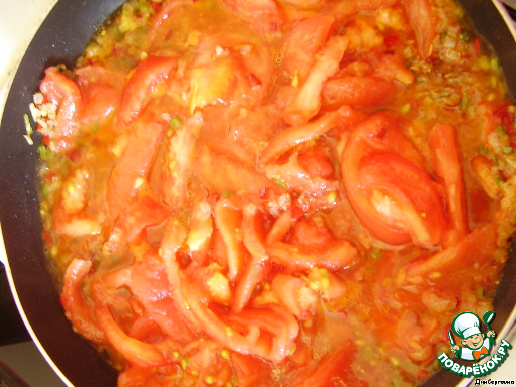 Добавляем в сковороду помидоры и тушим еще 10 минут.
