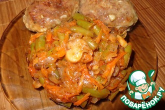 Стручковую фасоль (не размораживая) и красную фасоль (можно отварить, можно консервированную в собственном соку) добавляем к овощам. Все солим, перчим и перемешиваем, тушим 10 минут.