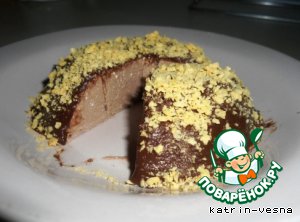 Когда шоколад мой остыл, я достала из морозилки свой будущий десерт, переложила его на блюдце (он хорошо внимается из посуды) и покрыла шоколадной смесью.