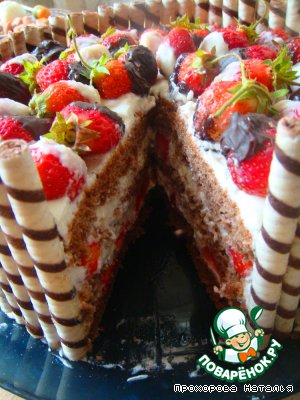 Очень вкусный торт с нежнейшим кремом и свежей клубничкой.