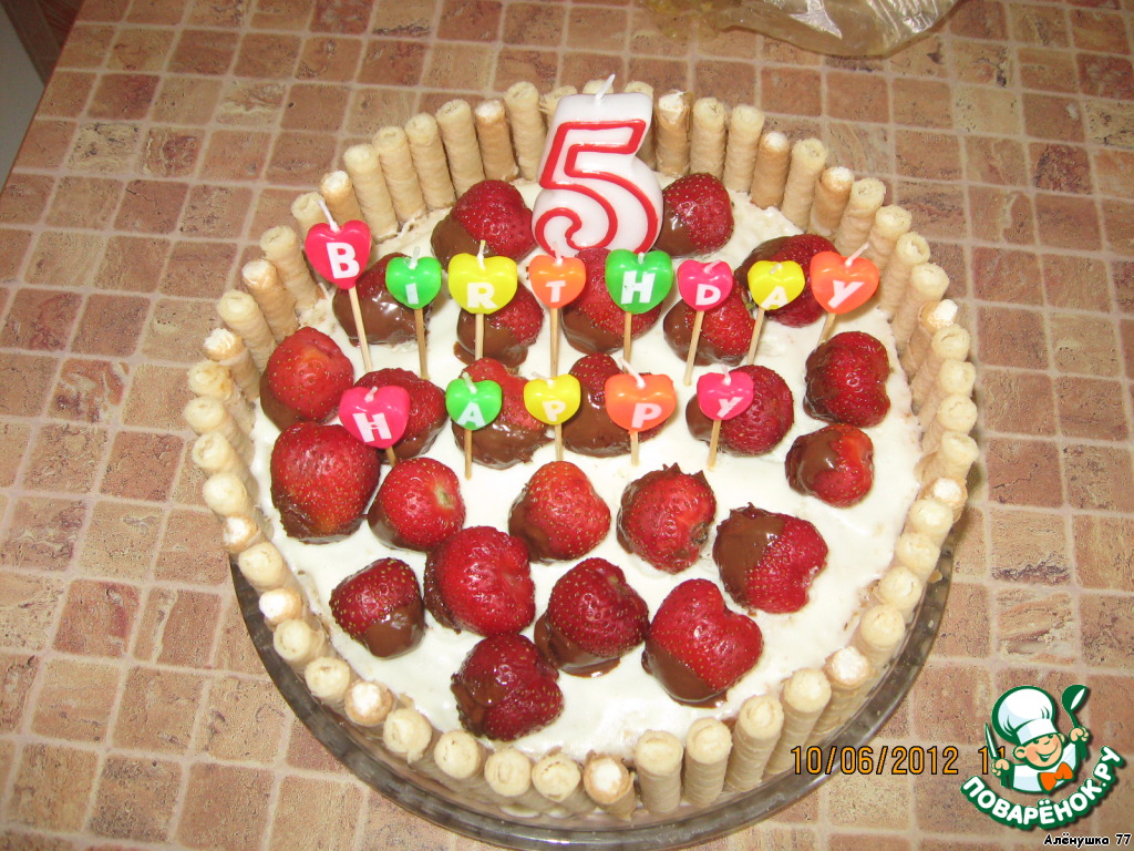Очень вкусный торт с нежнейшим кремом и свежей клубничкой.