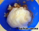 Белок от яйца необходимо взбить в пену и добавить к рыбе.