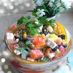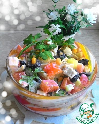 Очень вкусный и яркий салат! Рецепт был подсмотрен в арт-кафе "Победа" и результативно воспроизведен на своей кухне. Это один из любимых салатов моей семьи.