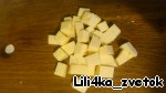 Отварить половинку грудки курицы (1 куриное филе), остудить и нарезать кубиками 1x1 см.