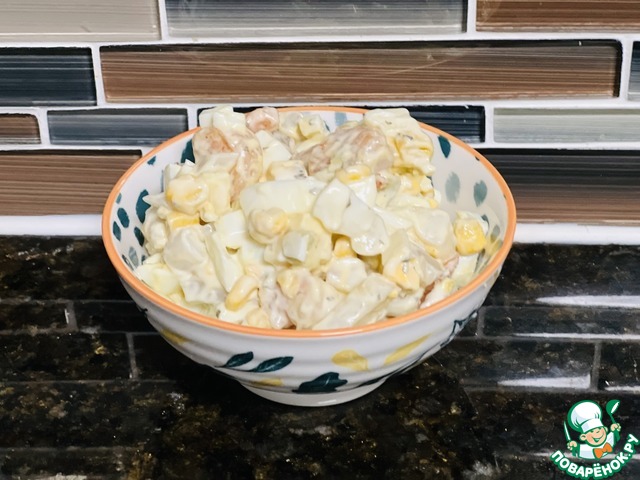 Добавляем кукурузу, немного лимонного сока, майонез.