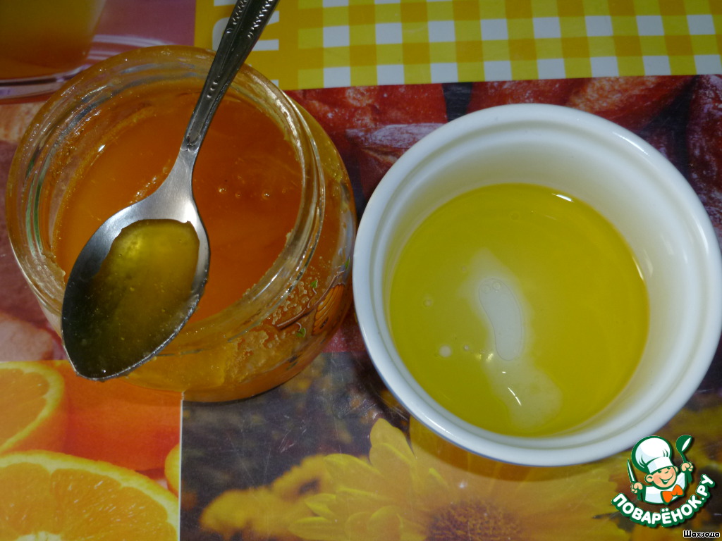 Делаем соус. Три ст. ложки оливкового масла соединить с лимонным соком.