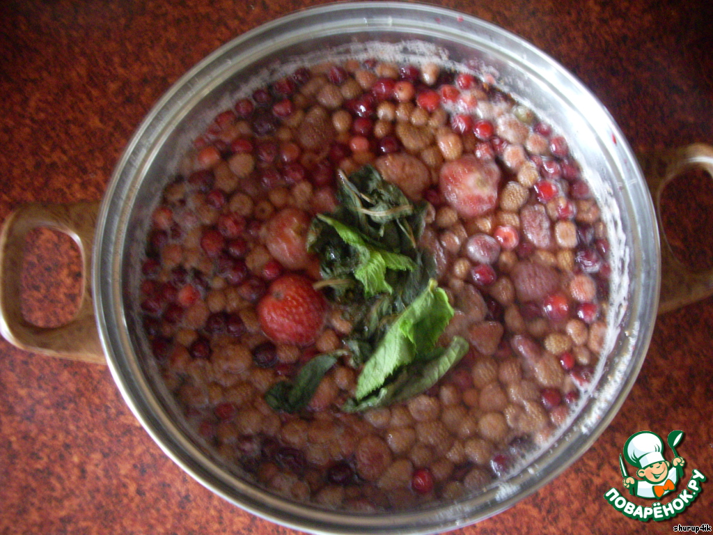 • Продукты для компота: клубника, земляника, клюква, сахар, мята.