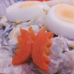 Все что нам понадобиться для этого украшения - одна морковь. Нарезать тонкий ломтик от морковки, поделить на 2 части фигурным ножом, можно без него. От края сделать надрез. Как на картинке. Чтобы это не было просто украшением, а вкусно было бы и есть, положите их до оформления в воду с лимоном. Так они не завянут и будут вкуснее.