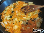 Чеснок мелко порубить, обжарить на растительном масле с натертой морковью, добавить порезанный кубиком лук.