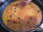 Когда лук станет полупрозрачным, добавляем специи, у меня зира, сушеный барбарис, черный перец и сушеная зелень укропа и петрушки.