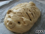 Смажем "Хрюшу" яйцом. Выпекать в разогретой духовке до 200 град. 50-55 мин. Я через 30 мин прикрыла фольгой, чтобы не подгорел. Остудить на решётке в течение 15-20 мин, прикрыв полотенцем, чтобы пирог немного "пришёл в себя", впитался сок.
