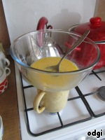 Яйца разбить в посуду, перемешать и поставить на водяную баню. Они должны стать теплыми, но перегревать их нельзя!