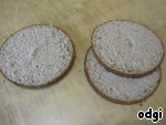 Готовый бисквит остудить, после чего разрезать на коржи. Коржи получаются пористыми и очень нежными! (Правда, у меня они получились не очень шоколадными, маловато какао добавила)